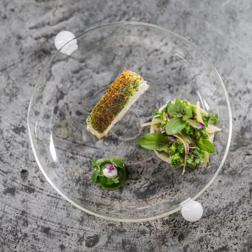 A glass-and-steel cube set within the gardens of Dobbiaco's former Grand Hotel, this one-starred table seats just twelve guests across five tables. Chef Chris Oberhammer crafts modern regional dishes using flour and meats from Klaude farm, a property run by a childhood friend, while caviar, seasonal truffles, and prawns introduce luxurious counterpoints. Anita Mancini's international wine selection completes the intimate experience.