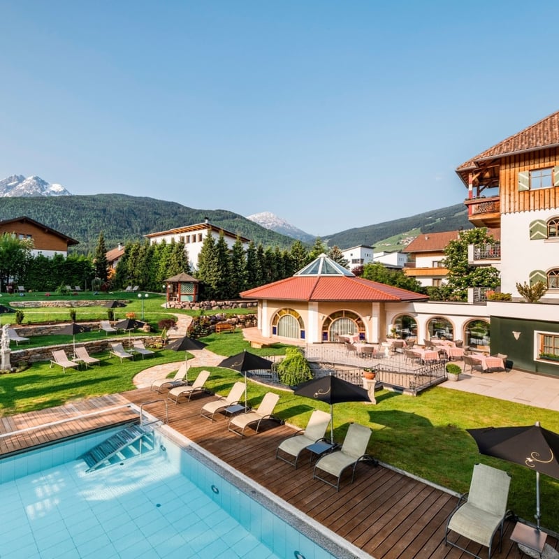 A postwar family retreat grown into one of the Puster Valley's most refined addresses, Mirabell Dolomites pairs traditional Alpine architecture with an expansive wellness sanctuary at its core. Indoor and outdoor pools, panoramic saunas facing the Dolomites, and treatment rooms designed for restoration anchor the experience. Interiors glow with elegant woodwork and warm furnishings—ideal for travelers seeking mountain immersion with serious spa credentials.