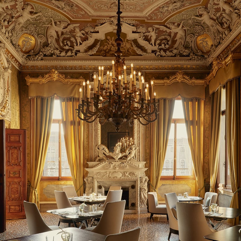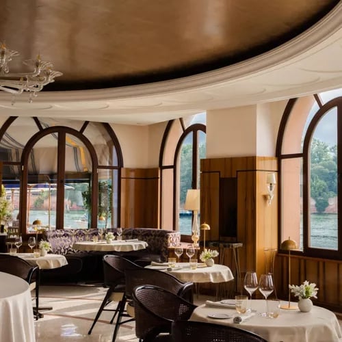 Donato Ascani commands the kitchen at this two-Michelin-starred dining room inside Palazzo Venart, bringing precision technique to lagoon vegetables and grilled preparations. Silk Route murals line the walls, a nod to Venice's trading past, while two tasting menus showcase Venetian ingredients with contemporary discipline. Diners can opt for à la carte selections or settle into one of the gardens—one facing quiet canals, the other the Grand Canal itself.