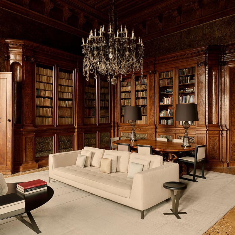 Venice's largest waterfront property commands Grand Canal views from a 17th-century palazzo renovated by London's Sagrada studio in homage to architect Carlo Scarpa. Ai Weiwei's White Chandelier, crafted in white Murano glass with Berengo Studio, anchors the lobby, while artist-in-residence Olivier Masmonteil contributes contemporary works. Arts Bar serves cocktails inspired by Koons and Banksy; Gio's Restaurant overlooks the canal. Family suites span three bedrooms, with staff arranging mask-making workshops and gondola excursions.