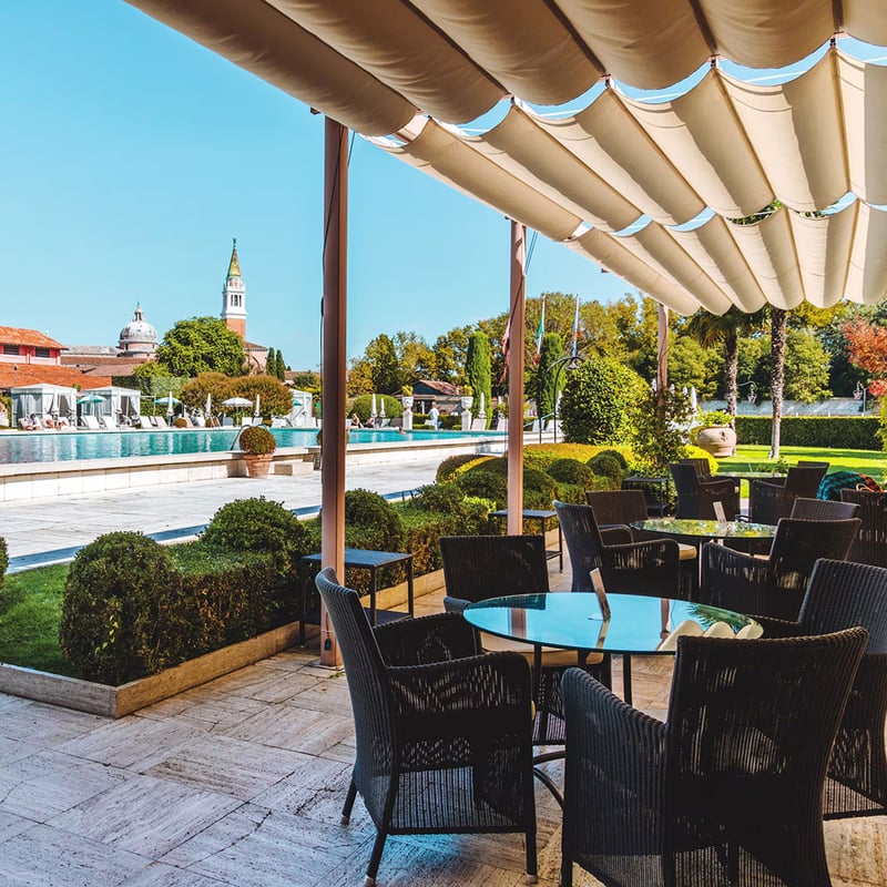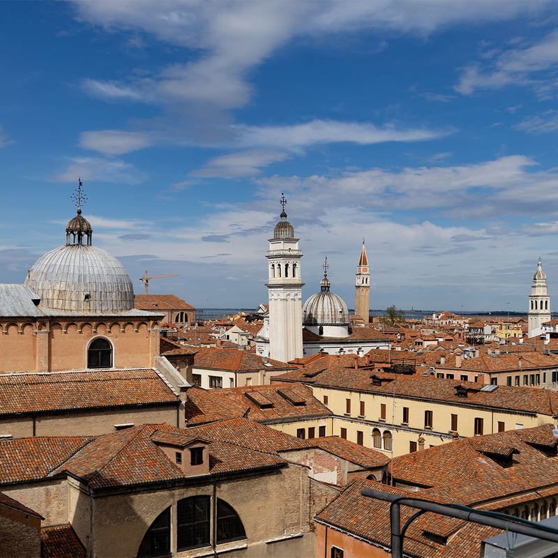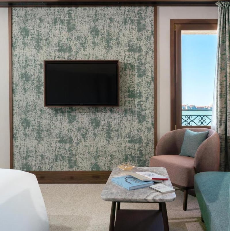 Parts of this Arsenale palazzo date to 1272, though its contemporary Italian design—Murano glass lamps, local fabrics, marble baths—feels decidedly modern. Lagoon-facing rooms and an Altana Suite with 360-degree terrace views frame San Giorgio and passing gondolas. VERO Restaurant serves Venetian seafood traditions outdoors overlooking the water, while three tranquil courtyards offer a rare respite from the city's perpetual crowds. The location places guests within walking distance of the Biennale grounds.