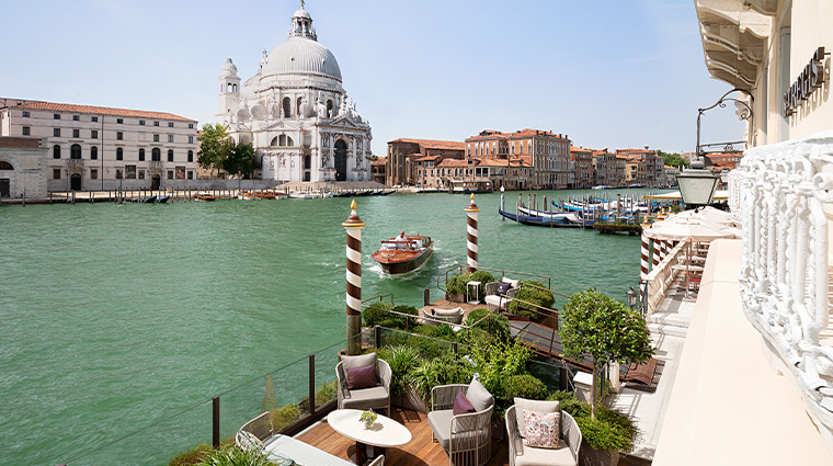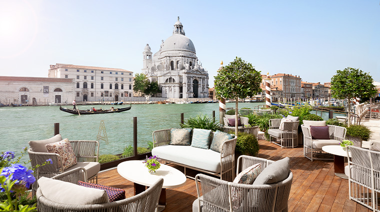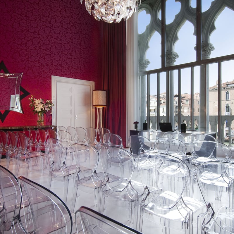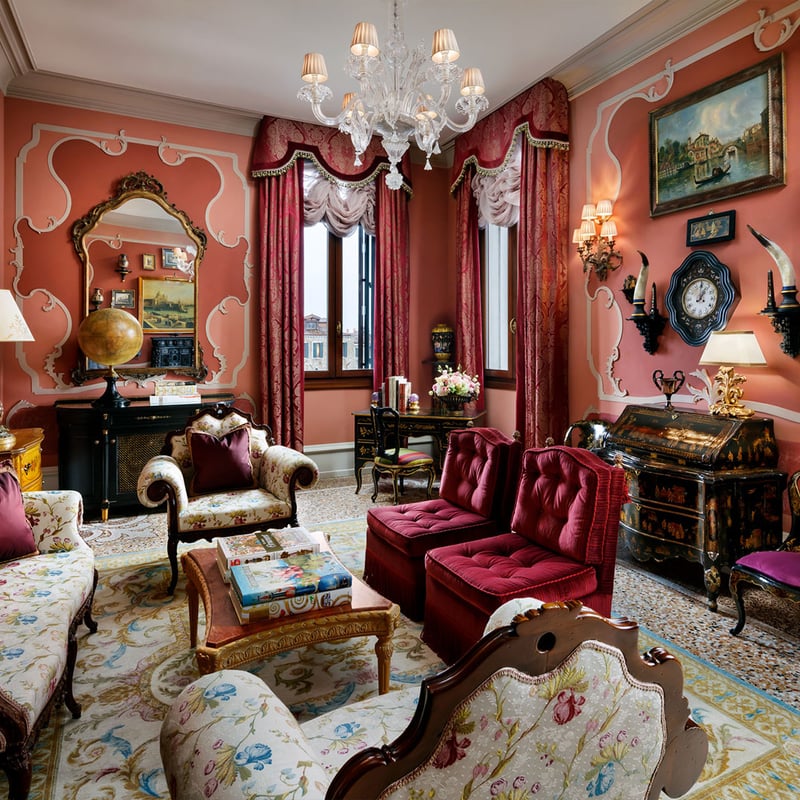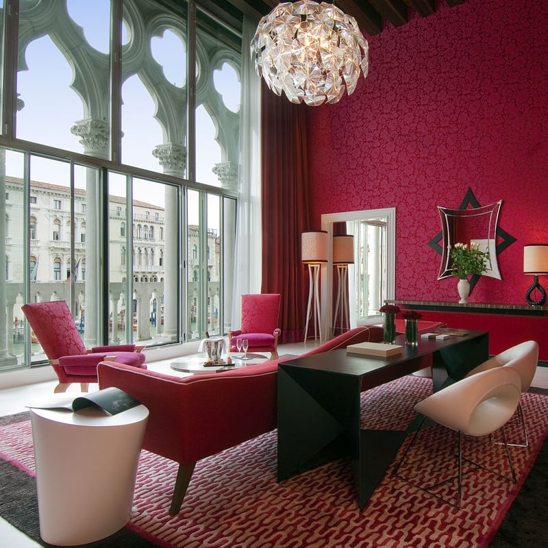 This nineteenth-century palazzo, reimagined by Florentine architect Luigi Ciompi, occupies the mouth of the Grand Canal with lagoon views on one side and Dorsoduro's museum quarter behind. Interiors strip Venetian motifs to their essentials—gold-walled bathrooms, crimson velvet banquettes, black coffered ceilings—while suites with private balconies frame the waterway. A wooden terrace catches morning sun for breakfast or afternoon drinks, and the hotel's courtyard offers respite between visits to the neighbouring Guggenheim and Salute basilica.