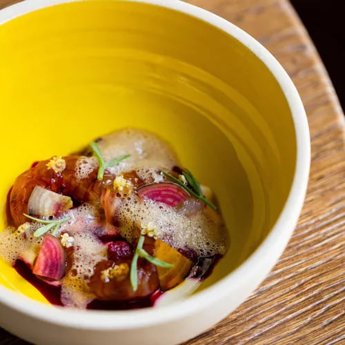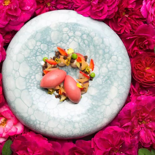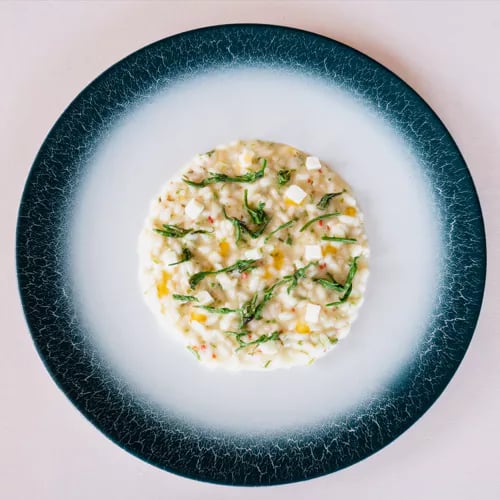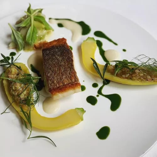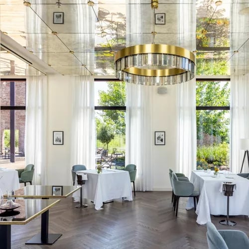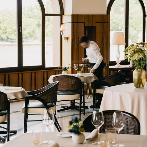Accessible only by boat, this one-starred destination occupies a private island in the Venetian lagoon, where chef Lorenzo Lai—working under Emanuele Scarello's guidance—presents two distinctive tasting menus. LagunAmare highlights the day's finest catch, while Giardino delle Rose draws entirely from the property's kitchen garden, both compositions reflecting the island's biodiversity. Summer arrivals begin with aperitifs on a terrace overlooking the olive grove before moving inside for refined Venetian cuisine.