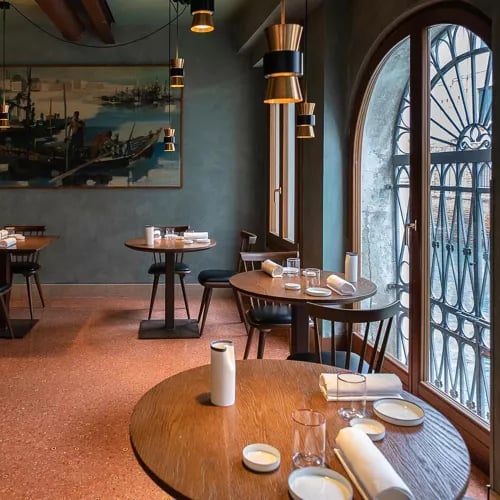 Wistèria's one-Michelin-starred kitchen delivers modern Venetian cuisine through six- or eight-course tasting menus that follow the rhythms of seasonal ingredients and regional specialties. Tables spill onto a canal-side terrace beneath fragrant wisteria when weather allows, creating an atmospheric counterpoint to the precision of dishes such as the acclaimed pumpkin, licorice, and almond dessert that exemplifies the restaurant's inventive approach to Veneto's culinary heritage.