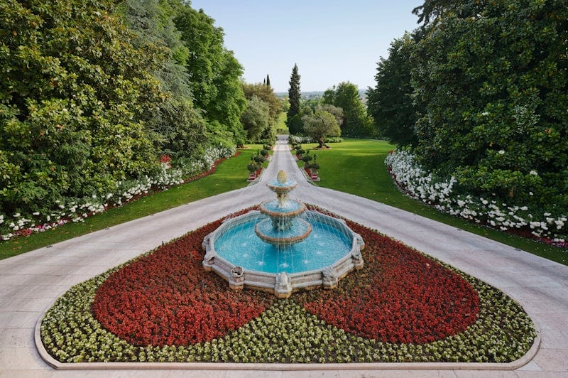 A fifteenth-century Venetian villa in Valpolicella's wine country doubles as a living gallery, its Baroque bones reimagined by Alessandro Mendini with works by Damien Hirst, Anish Kapoor, and Marc Quinn—each room catalogued with gallery-style placards. Chef Mattia Bianchi's Michelin-starred Amistà restaurant draws from the estate's own gardens, while the ESPACE BYBLOS spa offers Turkish baths and outdoor Jacuzzis amid five acres of manicured grounds.