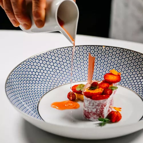 Within a Renaissance palace near Piazza delle Erbe, the Rizzo family has presided over Verona's most refined table for four decades. Father Elia established the classical foundation; son Matteo now interprets those recipes with a lighter, contemporary touch. The ritual begins with their legendary butter and mascarpone mantecato, while the Chapter 43 tasting menu traces the kitchen's evolution through its most iconic dishes. One Michelin star.