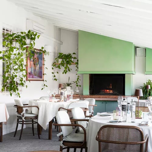A country villa on the outskirts of Vicenza channels the intimacy of a private home, its dining room warmed by a crackling fireplace in winter, its veranda flooded with natural light year-round. The kitchen delivers Venetian cooking with both classical restraint and creative ambition, moving confidently between meat and fish preparations that reward travelers seeking a romantic, unhurried meal.