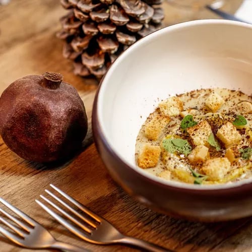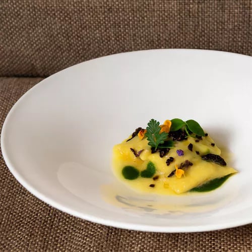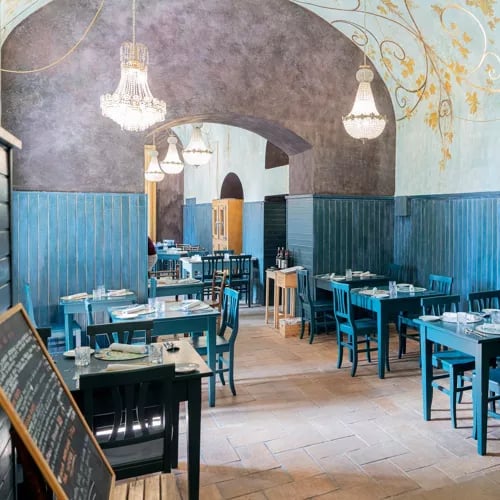 Chef Lezzerini brings contemporary precision to ancestral Tuscia recipes at this intimate dining room within Antico Borgo di Sutri. Large windows frame the verdant landscape while tasting menus of four to eight courses unfold—saffron raviolini with marinated young rabbit, Carnaroli Riserva San Massimo risotto enriched with smoked robiola and wild nettles. A refined destination for travelers seeking regional authenticity through a modern lens.