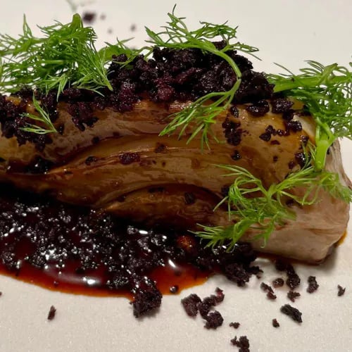 Perched above the bucolic valleys near Acquapendente, this one-Michelin-starred table from Cesare and Romano channels Tuscia's terroir through refined technique. Iced chickpea hummus arrives with startling texture, lentil caviar opens the meal, and when available, the pigeon—tender, served alongside liver ragout bruschetta and a delicate dumpling in broth—becomes the defining course. Terraces frame the landscape; aged bottles reward exploration.