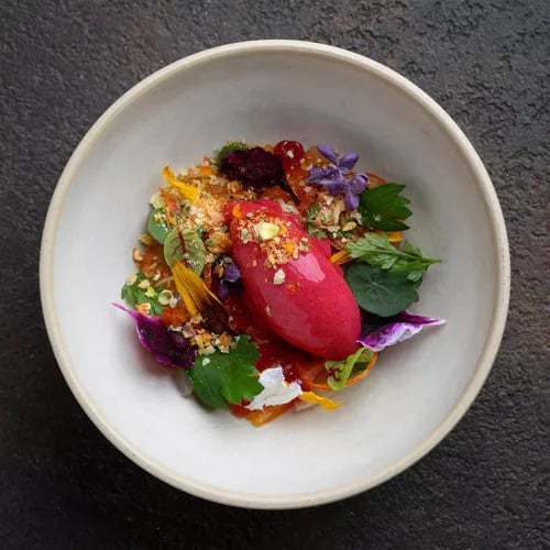 A red-brick former warehouse on Riga's outskirts houses this one-Michelin-starred table where chef Max Cekot controls every detail—furniture, crockery, and the surprise tasting menu itself. The evening unfolds theatrically: cocktails and amuse-bouches below, then a climb up a narrow spiral staircase to the dining room. Dishes layer sweet, savoury, and acidic notes with precision, sauces binding home-grown ingredients like petunia to langoustine and pumpkin.