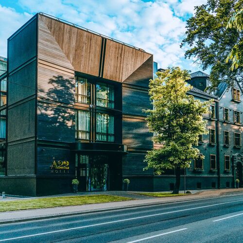 A 1930s building that once housed the American embassy now operates as a twenty-room boutique hotel where period architecture meets bold contemporary design. The Presidential Suite commemorates a young John F. Kennedy's stay in Riga, while the intimate sixteen-seat JOHN Chef's Hall delivers refined gastronomy in an exclusive setting. Pet-friendly, with sauna facilities for unwinding after exploring the Latvian capital.