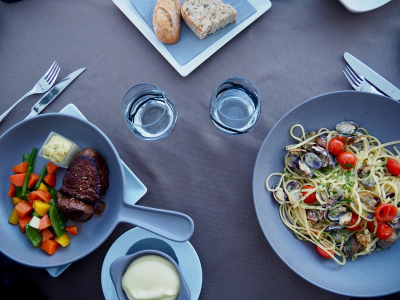 On the 7th floor, we take a seat at the Horizon Deck & Champagne Bar. In this restaurant with an exceptional view, executive chef Philippe Joannès (a “Meilleur Ouvrier de France”) delights patrons with a menu that emphasizes Mediterranean cuisine. There are dishes from southern France as well as Italy; while I opt for the spaghetti alle vongole, my husband chooses the Angus beef fillet with a side of vegetables and potato purée. For dessert, we give in to a berry crumble and one of the chef's pastries that has been winking at us. The setting is fantastic, making for a very pleasant evening!