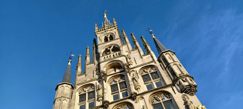 The dining scene draws heavily on local traditions — stroopwafel bakeries where you can watch the syrup-filled waffles pressed fresh, and restaurants serving aged Gouda in fondues and gratins. Along the Turfmarkt and Haven waterways, converted warehouses house contemporary bistros with canal-side terraces. Sint Janskerk, home to the longest stained glass narrative in the world with 72 windows spanning the Reformation divide, provides cultural weight to an afternoon's wandering before drinks at a brown café on the Westhaven.