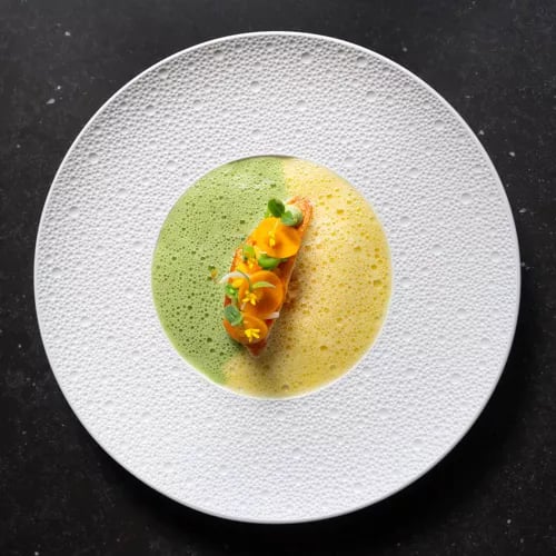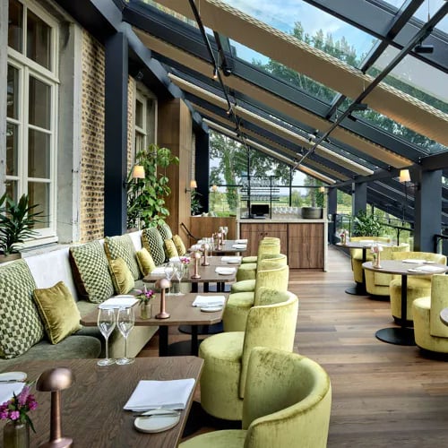 Drawing ingredients from fifty kilometres of the Meuse River valley, Maes celebrates Limburg's terroir through a refined modern French lens. Langoustines arrive in a regional interpretation of bouillabaisse, while local lamb takes on oriental inflections—think pastilla of neck with warming spices. The luminous dining room opens onto a terrace surveying the wooded grounds of Van Oys hotel, where cosmopolitan technique meets deep provincial roots.