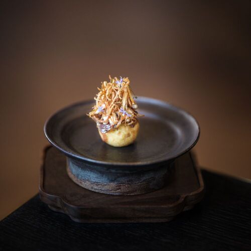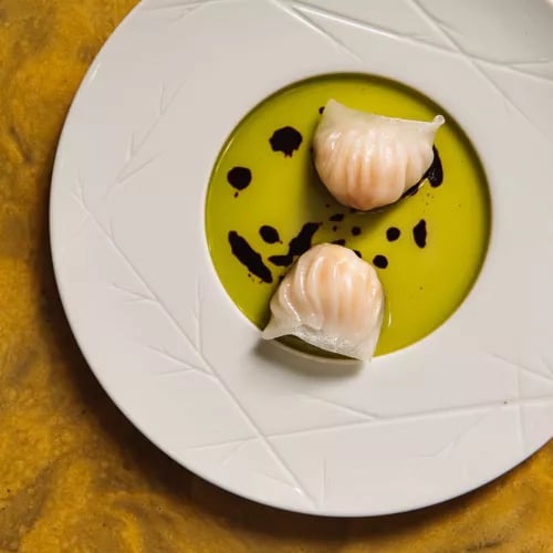 Chef Sofiane Bons brings French classical technique to Rotterdam's dining scene, his meticulously crafted sauces revealing deep training while Asian influences add unexpected intensity. The signature red mullet arrives with a lacquered, crispy crust, its bone-derived sauce enriched by a nutty, spiced mole. Behind the open kitchen, 12,000 bottles line the walls of this vintage-meets-contemporary space where maître d' Pieter Timmer orchestrates service with youthful precision.