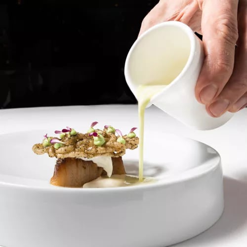 Chef Patrick 't Hart holds a Michelin star for his seafood-exclusive kitchen in Rotterdam's historic Schipperskwartier, where diners look out over the harbor while plates arrive bearing the ocean's finest. His classical French foundation absorbs global inflections—nori, sambal, tom kha kai emulsion—while signature preparations like sea bass with carrot rendered as both barbecue sauce and citrus reduction demonstrate technical range matched by restraint.