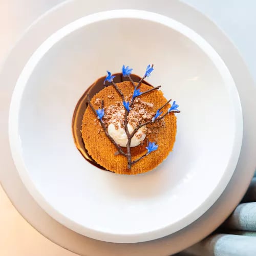 François Geurds commands two Michelin stars at his Rotterdam address, where Modern French technique meets theatrical presentation—custom porcelain crafted for individual dishes, a private dining room beneath an inverted garden. The kitchen treats Wagyu A5 and humble potatoes with equal reverence; a signature pairs raw tuna with grilled pineapple, black sesame, and citrus ceviche. The dessert trolley finale is non-negotiable.