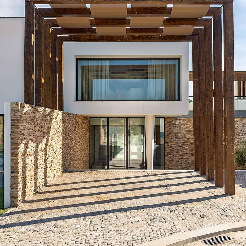 Cube-shaped contemporary villas clad in cork rise from the Alentejo plains at this sustainable retreat outside Évora. The 56 suites—starting at 70 square meters—feature private terraces surveying the countryside, while family configurations add kitchenettes for longer stays. A spa with Turkish bath and indoor pool anchors the wellness offering; the Cardo Restaurant delivers regional cuisine against panoramic views of the surrounding dehesa landscape.