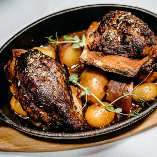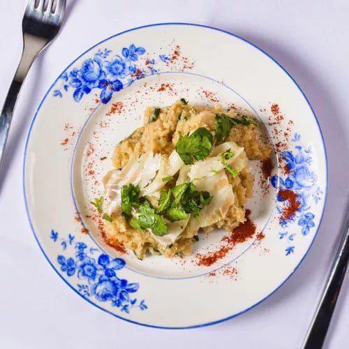 Down a narrow lane in Évora's historic quarter, chef Gonçalo Queiroz and sommelier Eugénia Queiroz run this intimate bistro devoted to Alentejo's culinary roots. The seasonally shifting menu—available à la carte or as three- and five-course tastings—applies modern technique to regional tradition, yielding dishes like slow-cooked pork loin brightened with apricots and sprouting greens. Eugénia's mystery wine pairings add welcome spontaneity.