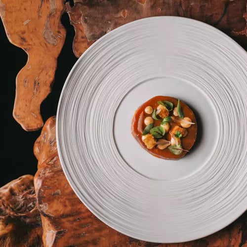 Chef David Jesus, who refined his craft at Lisbon's two-Michelin-starred Belcanto, leads this dining room within L'AND Vineyards Relais & Châteaux. His tasting menus—Expedição and Caminhos—trace Portugal's culinary heritage through the lens of colonial influences and personal memory. The signature duck with rice, snails, and watercress pays tender homage to his Sintra grandmother, grounding creative ambition in deep regional tradition.
