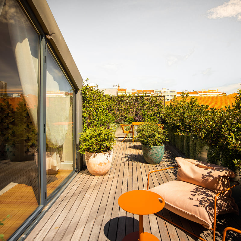 Pale wood interiors and abundant greenery set a sleek-yet-welcoming tone at this 44-room boutique hotel steps from Avenida da Liberdade. Rooms blend mid-century furniture with playful retro touches—Marshall speakers, Smeg mini-fridges stocked with Portuguese snacks—while the ground floor houses a Mediterranean restaurant and a library with an honesty bar. The rooftop pool, framed by Lisbon's skyline, anchors the experience.