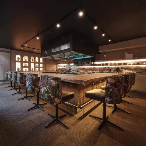 Twelve seats surround a central island kitchen in this wood-clad former wine cellar beneath Torel Palace Lisboa, where chefs Vítor Matos and Guilherme Spalk orchestrate a one-Michelin-star fusion menu. Portuguese ingredients meet French technique in dishes like onion chawanmushi and violet shrimp, served without fixed timing—guests set their own pace while the duo performs with infectious energy and theatrical flair.