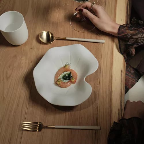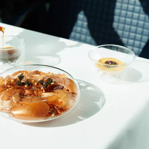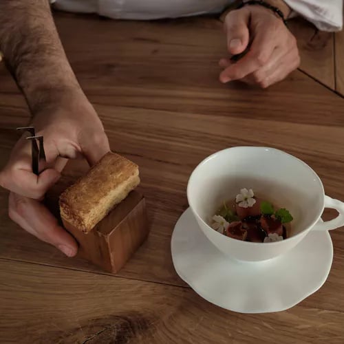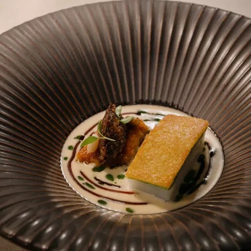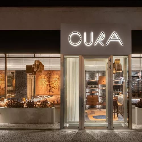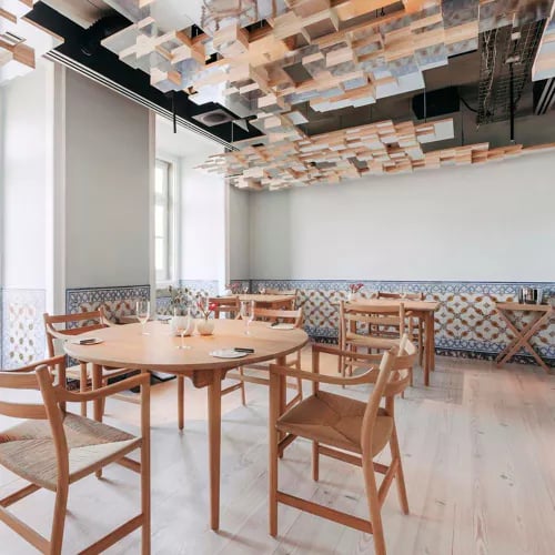 André Cruz commands the Michelin-starred kitchen at Altis Belém's light-filled dining room overlooking the Tagus. His seasonal Semente menu—offered in Leaf, Roots, and two vegetarian versions—reimagines Portuguese classics with precision: the Cozido do Mar layers fish, bivalves, and local vegetables, while Alentejo's convent-inspired Sericaia arrives with honey and native herbs. Metallic ceiling cubes and Portuguese linen soften the contemporary architecture.
