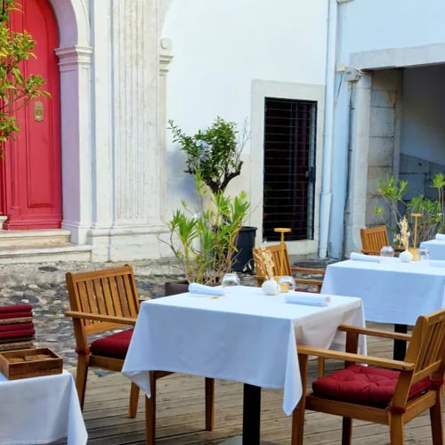 Chef Philippe Gelfi brings contemporary French technique to Alfama's historic Pátio de Dom Fradique, earning a Michelin star for cuisine rooted in local seasonal produce. Two tasting menus—Grenache and Experience—unfold at kitchen-side tables where diners watch chefs in traditional toques work under Gelfi's direction. The romantic terrace, set beside the Palácio dos Condes de Belmonte, offers an intimate setting for special occasions.