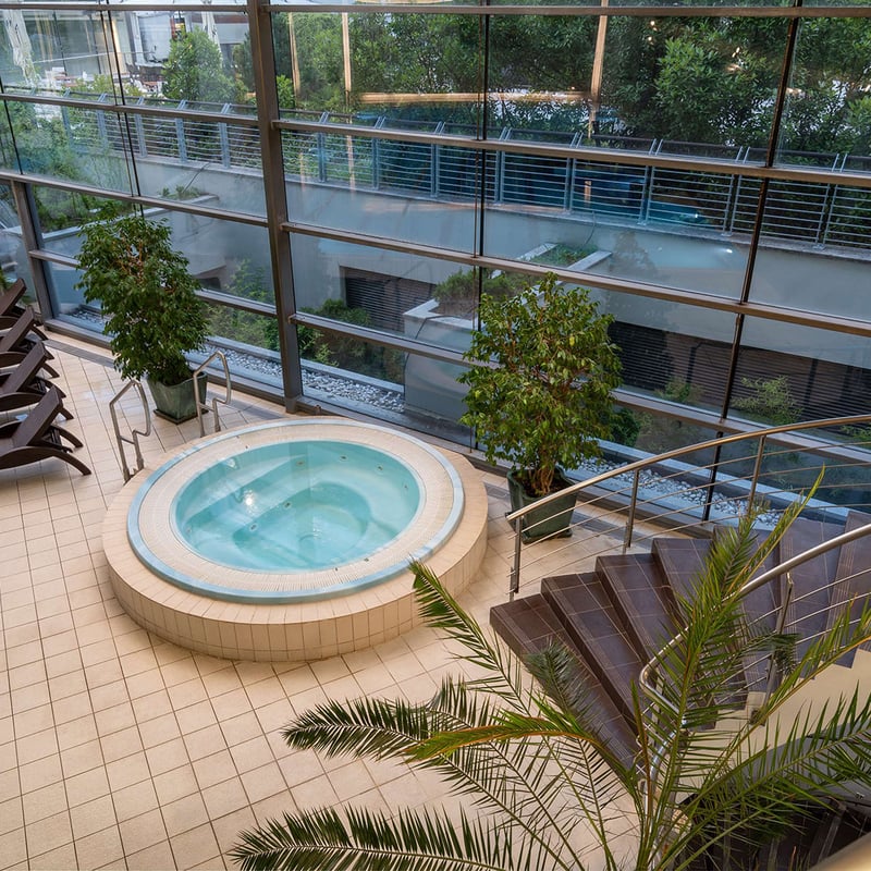 Romanesque columns and classical statuary frame the indoor pool at this central Bucharest retreat, lending an unexpected grandeur to the wellness experience. Private treatment rooms offer stone therapy and sensory showers, while a Turkish steam bath and Finnish sauna complete the thermal circuit. The neo-classical setting—all ornate details and hushed corridors—provides a cultivated escape from the capital's energetic streets.