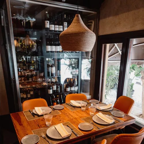 Colourful vegetables adorn the entrance of this contemporary gastrobar, a fitting tribute to Almería's celebrated produce. The open kitchen anchors a relaxed dining room where chef Tony García navigates between tradition and innovation. Guests choose from an executive format of miniature courses, the Fortuny tasting sequence, or Jara—an entirely plant-based menu that showcases the region's agricultural wealth with thoughtful precision.