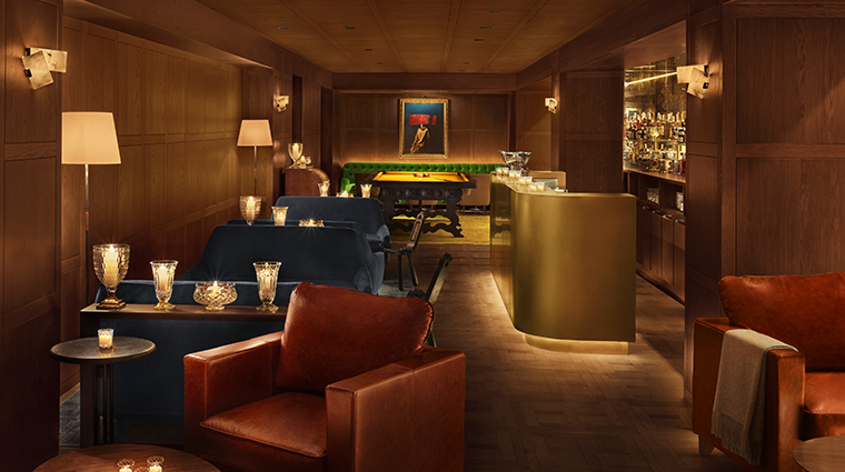 Four distinct drinking destinations occupy The Barcelona EDITION, each with its own identity. The Roof delivers panoramic views stretching from Santa Maria del Mar to the Mediterranean, its retractable ceiling ensuring year-round access to Latin-Asian sharing plates and seasonal cocktails. Below street level, the Punch Room—ranked among the world's top 500 bars—serves specialty punches from vintage silver bowls beside a golden-cloth pool table, while Cabaret pairs tasting menus with live performances on a velvet-curtained stage.