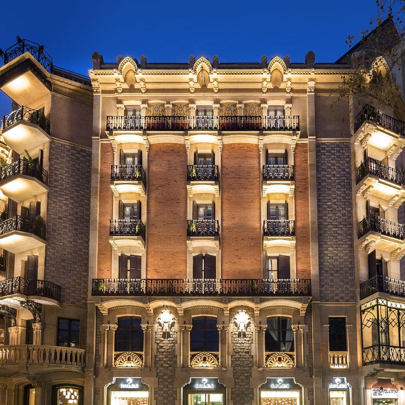 A grand 19th-century mansion on Passeig de Gràcia houses this architectural showpiece, its curving ceilings and soaring beams echoing Gaudí's nearby masterworks. The 84 soundproofed rooms feature exposed brick, wood paneling, and free-standing tubs with Jo Malone amenities. Restaurante Lasarte, the three-Michelin-starred table by Martín Berasategui, anchors the ground floor—reason enough to book. A spa with Turkish bath and pool completes the proposition.
