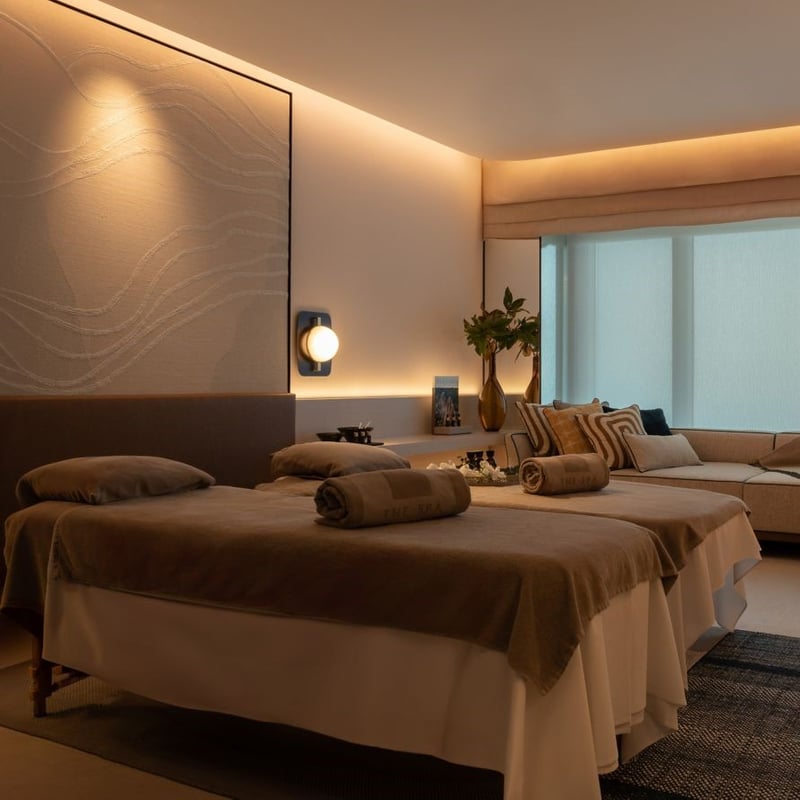 Perched on the 42nd and 43rd floors of Hotel Arts Barcelona, 43 The Spa commands sweeping Mediterranean panoramas from every corner—treatment suites, saunas, even the dressing rooms. Eight therapy rooms showcase Natura Bissé protocols while outdoor terraces offer private jacuzzis suspended above the cityscape. Separate wet areas feature Klafs saunas, steam rooms, vitality pools, and ice fountains, creating a complete thermal circuit high above Barceloneta beach.