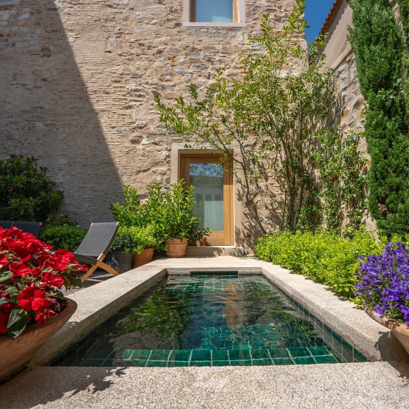 Architects Tuñón y Albornoz stripped the 15th-century Palacio Paredes Saavedra to its bones—vaulted ceilings, stone arches—then lined it with pale wood and polished concrete, creating interiors that glow with restrained modernism. Just eleven minimalist suites occupy the upper floors, while below, an illuminated courtyard leads to Atrio, the city's three-Michelin-starred restaurant. A small pool and wellness center complete this architectural statement piece.