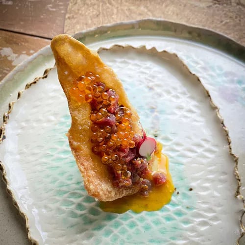 Chef Guti Moreno forages, hunts, and harvests from the gardens surrounding Finca La Desa to compose his two tasting menus—Tupío and Gran Tupío—where Extremaduran tradition meets restrained modernity. Cod roe 'à la importancia' and wild boar ribs with smoked piparra peppers showcase his command of local terroir. The name itself, from Castúo dialect, means 'satiated'—a fitting promise for diners seeking substance over spectacle.