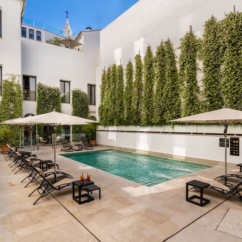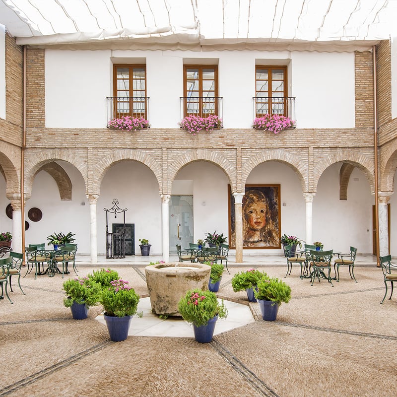 Two 18th-century palaces in Córdoba's old Jewish quarter now house this 108-room property, their Moorish courtyards preserved for al fresco dining and evening drinks. Rooms blend contemporary design with original stone walls; the fortunate few catch views of the mosque-cathedral's tower rising above the rooftops. A seasonal rooftop pool, garden with library, and proximity to the Roman bridge complete the picture for history-minded travelers.