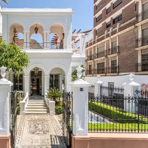 A 1928 palace on Plaza de las Tendillas, its twin decorative towers and four-story façade now house 102 rooms dressed in Scandinavian minimalism—pale wood floors, neutral tones, Japanese bathroom fittings. The original Andalusian patio survives at street level, while upstairs, suites open onto private terraces facing the UNESCO-listed old town. The rooftop bar, with its Mosque-Cathedral views, draws sunset crowds for tapas and cocktails.