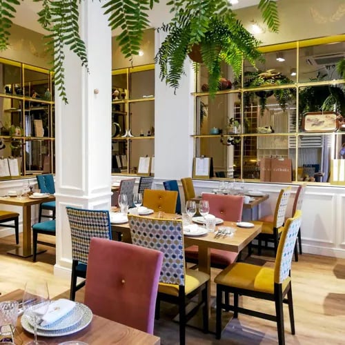 Brothers Narciso and Paco named their restaurant after the Spanish tradition of dishes eaten with a spoon—a childhood passion now expressed through Bib Gourmand-recognized cooking. The kitchen delivers Cordoban classics with contemporary precision: silky salmorejo, crisp veal croquettes, golden flamenquín, and slow-braised oxtail. Daily specials follow market rhythms, while the renovated two-floor dining room accommodates both casual lunches and leisurely evening meals.