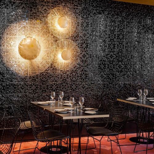 The Manzano siblings, celebrated for their work at Casa Marcial, bring a relaxed Japanese-inflected sensibility to this designer-accented dining room on Plaza Florencio Rodríguez. The menu encourages sharing: pork cheek and prawn nems, impeccable potato tortilla, and the family's legendary ham croquettes. Counter seating offers front-row views of the kitchen's precise choreography—ideal for solo diners seeking connection alongside craft.