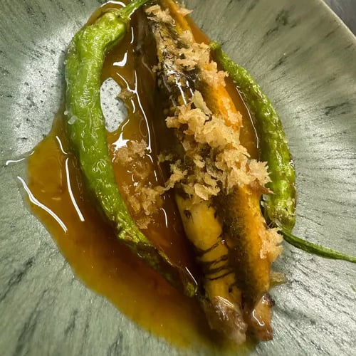 Chefs Álvaro Gragera and Carlos Fraguas run this intimate counter near the marina, where eight seats face the action. Their approach draws on Japanese technique applied to Bay of Biscay and Mediterranean catch, with fish aged in-house to concentrate flavor. The nigiris—generous, precisely cut—anchor a sharing-focused omakase that rewards those seeking craft over ceremony in Gijón's dining scene.