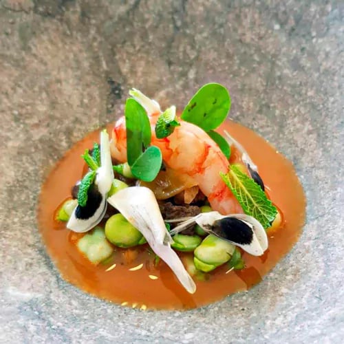 Chef Andoni San Martín commands the kitchen at this address perched within Ibiza's fortified old town, where a sun-dappled terrace overlooks the ancient ramparts. His modern creative cooking draws heavily on the island's agricultural bounty—local olive oils, sun-ripened produce—and sustainably caught fish from surrounding waters. Both the tasting menu and à la carte options deliver polished, ingredient-driven plates with Mediterranean clarity.