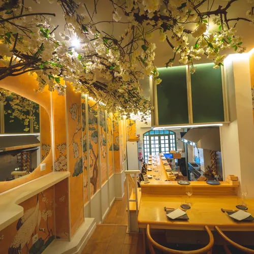 A single chef works the bar at this intimate Jerez address, orchestrating a three-hour Omakase that shifts with the market's daily yield. The concept—tsuro, Japanese for passageway—frames each meal as a crossing between Andalusian terroir and Japanese technique. Guests witness the rice ceremony and meticulous knife work up close, making this Michelin Plate holder an immersive study in precision rather than mere dinner.