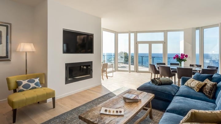 As soon as you enter one of the 121 rooms and suites, you feel ready to relax. The balcony offers an unobstructed view either of the mountains or of the bright blue Mediterranean Sea below, while the hotel's interior design is both elegant and subdued. The comfortable, well-lit rooms feature a neutral palette of colors punctuated by more colorful accents, lending them a modern and soothing ambience. The Jumeirah Company's reputation for hospitality shines through with several thoughtful welcome gifts left out for guests, such as fruit and a bottle of locally-sourced olive oil.