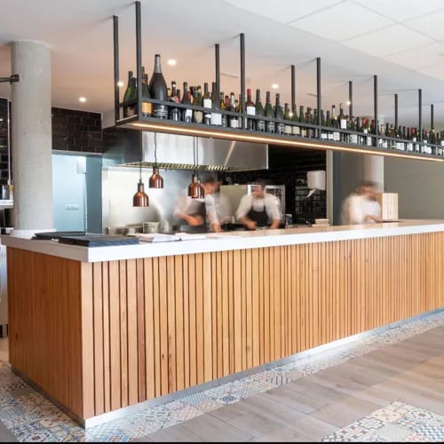 Perched above the Mercat de la Carn, chef Oriol Llavina's Bib Gourmand address draws directly from the market stalls below for its updated Catalan cooking. Guests choosing the bar counter watch the brigade at work, plating signature canelons and rice laden with cuttlefish and red prawns. Midweek brings the elaborate Menú del Cigró; weekends shift to à la carte freedom—both deliver remarkable value.