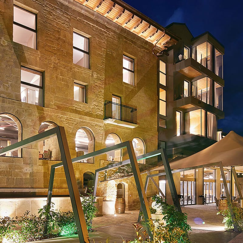 A 16th-century manor house turned sixteen-room adults-only retreat, Hotel Santa María Briones anchors itself in Rioja's wine-soaked landscape. Stone walls and heavy timbers frame rooms with vineyard and river views, while chef Juan Cuesta's Allegar restaurant applies contemporary technique to regional tradition. The cellar favors local producers, and the Vivanco Wine Museum lies within walking distance—a natural extension of the immersion.