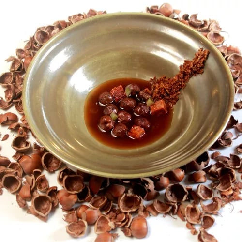 A former blacksmith turned chef, Ignacio Echapresto runs this two-Michelin-star table with his brother Carlos in a tiny Riojan village. The ritual begins in their vegetable garden before guests proceed to dining rooms overlooking green hillsides. Three seasonal tasting menus—Mirada Raíz, Mirada al Horizonte, Mirada Vegetal—celebrate daily harvests through dishes of deliberate simplicity, each combining just two or three elements. The cellar adds house-made meads and kombuchas.