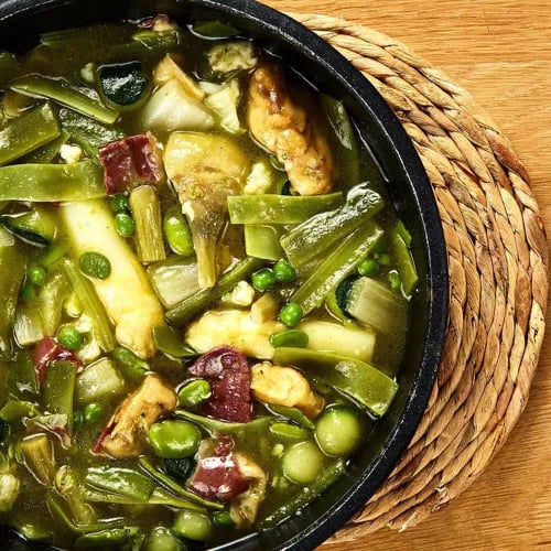 Owner-chef Ramón Piñeiro earned a Bib Gourmand for his contemporary take on Riojan home cooking, served within exposed brick walls steps from Logroño's cathedral. The daily-changing stew—pochas, caparrones, or patatas a la riojana—anchors a market-driven menu that celebrates the region's exceptional vegetables. A bistronomic address where tradition meets restless culinary curiosity.