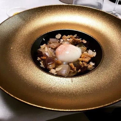 Carolina Sánchez and Iñaki Murua, partners in life and the kitchen since their days at the Basque Culinary Center, have built a one-star table that bridges continents. Sánchez—the only female Ecuadorian chef to hold a Michelin star—brings tropical fruits and condiments to meet La Rioja's exceptional produce, while Murua anchors the menu in regional tradition. The result: technically exacting contemporary plates with genuine surprise.