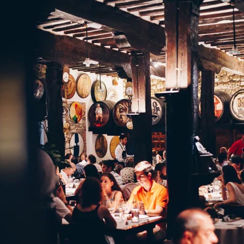 Walls lined with paintings from the Museo Redondo collection give this 1930s former wine and provisions shop a lived-in bohemian warmth. The kitchen stays faithful to Cantabrian traditions—braised snails cooked Rioja-style, hake draped in velouté with sweet peppers—while the ritual of an aperitif at the bar before dinner adds an unhurried sociability. A Santander institution for those who value character over polish.