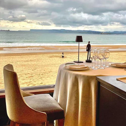 Perched above Sardinero beach in the Cormorán building, this one-Michelin-starred table presents Cantabrian cooking through a contemporary lens. The kitchen sources fish daily at auction—options recited tableside—while native Tudanca beef anchors the land-based offerings. Three tasting formats include a Dom Pérignon pairing for occasion dining. Downstairs, the casual bistro Querida Mar provides a lighter alternative with matching sea views.